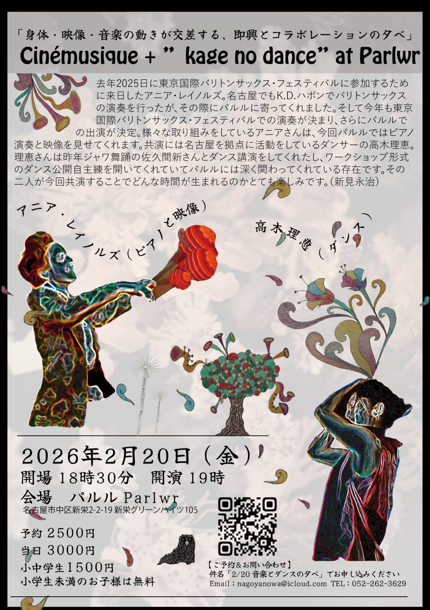 「身体・映像・音楽の動きが交差する、即興とコラボレーションの夕べ」 出演 アニア・レイノルズ(ピアノと映像) 高木理恵(ダンス) 去年2025日に東京国際バリトンサックス・フェスティバルに参加するために来日したアニア・レ […]